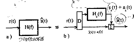 Lo stimatore deve necessariamente introdurre distorsione in quanto deve favorire il transito delle componenti spettrali di r(t) per le quali il segnale utile prevale sul rumore e ostacolare invece il transito delle componenti per le quali il rumore prevale sul segnale. Ammettendo la sola distorsione lineare di ampiezza si ha il seguente schema equivalente per lo stimatore che evidenzia come la stima continua sia sia composta da 4 addendi