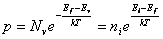 11) Concentrazione di lacune in banda di valenza : Essendo molto poche le lacune in banda di valenza, le pensiamo tutte concentrate sul bordo dove la densità di stati è Nv , e la funzione di Fermi-Dirac si riduce ad un esponenziale, pertanto