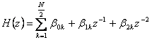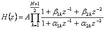 6) Realizzazione in forma in cascata di un sistema IIR : In sostanza la funzione di trasferimento H(z) viene scomposta in una produttoria che al fine di minimizzare la memoria si riduce a