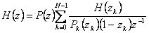 13) Realizzazione di un sistema FIR basato sul campionamento in frequenza : La funzione di trasferimento del sistema FIR può anche essere scritta nella forma che in sostanza evidenzia la possibilità di realizzare un filtro FIR come cascata di un filtro FIR molto semplice con un sistema IIR .