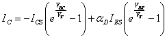 7) Modo di funzionamento attivo inverso : Si possono semplificare le equazioni di Ebers - Moll in quanto per la giunzione di collettore polarizzata direttamente dentro parentesi rimane il solo termine esponenziale mentre per la giunzione d´emettitore polarizzata inversamente l´esponenziale dentro parentesi è trascurabile rispetto ad 1 . Si ha che solo una piccola parte della corrente iniettata dalla base raggiunge l´emettitore quindi si ha aI << 1 ed anche