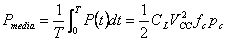 dove fc è la frequenza di lavoro del circuito mentre pc è la probabilità che vi sia una commutazione mentre il termine ½ è inserito perché la commutazione da H®L che scarica il condensatore di carico non richiede energia dalla alimentazione. |
