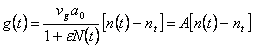 esso è pertanto nullo per densità di portatori inferiori alla densità di trasparenza nt mentre oltre ha un andamento lineare con pendenza pari al guadagno differenziale a .