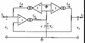 Questo circuito presenta un´impedenza d´ingresso inversamente proporzionale all´impedenza di un dato carico, nel caso questo sia un condensatore si ottiene quindi il comportamento di un´induttanza. Nel caso occorra un induttore flottante si adotta invece lo schema :