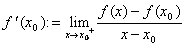67) Limite destro : Se x0 Î Â* è un punto di accumulazione destro per X Þ l Î Â* si dice limite destro di f(x) per x ® x0 se per ogni intorno V di l esiste un intorno destro U+ di x0 tale che per ogni elemento x appartenente a questo intorno ad esclusione di x0 si ha che f(x) Î V.