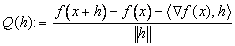A tal fine si prendono i primi 2 termini del numeratore e tramite il teorema del valor medio per funzioni di più variabili applicato lungo le direzioni dei versori della base canonica, ci si riporta ad avere fx1 ed fx2 da poter raccogliere. f(x1 + h1 , x2 + h2) - f(x1 , x2) = [f(x1 + h1 , x2 + h2) - f(x1 , x2 + h2)] + [f(x1 , x2 + h2) - f(x1 , x2)] ed applicando il teorema del valor medio lungo e1 ed e2 ai termini contenuti in ciascuna delle 2 quadre, si ottiene che : f(x1 + h1 , x2 + h2) - f(x1 , x2) = fx1(x1 + q1h1 , x2 + h2)h1 + fx2(x1 + q1h1 , x2 + h2)h1 la quale sostituita nella definizione di Q e raccogliendo h1 ed h2 restituisce :