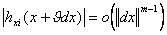 a) In sostanza si deve verificare che Ricordando che il polinomio di Taylor è tale che fK(x0) = TnK(x0) segue che h(x0) = 0 e si può applicare il teorema del valor medio: h(x+dx)=h(x+dx)-h(x) = Dvh(c)||dx|| = <Ñf(c),dx> = |h(x+dx)| = p0 ® Il teorema è vero per m=1 in quanto si ritrova la definizione di differenziabilità p1 ® Si suppone il teorema valido sino a m-1, pertanto applicandolo ad hxi si ha: hxi (x+dx) = hxi (x ) + infatti le hxi sono m-1 volte differenziabili ed hanno le derivate di ordine £ m nulle in x0 , si ha quindi hxi(x+dx) = o(||dx||m-1) Þ hxi(x+qdx) = o(||qdx||m-1). Sostituendo questo risultato nella [1] il teorema è dimostrato, infatti si ha : h(x+dx) = L´unicità del polinomio di Taylor si dimostra considerando un P(x+dx) di grado £ m tale che f(x+dx) = P(x+dx) + o(||dx||m) per dx®0 , del resto è anche f(x+dx) = Tm(x+dx) + o(||dx||m) , uguagliando si ha : P(x+dx) - Tm(x+dx) = o(||dx||m e dato che entrambe i polinomi sono di grado £ m ne consegue che o(||dx||m non è in grado di assorbire nessun termine degli stessi e dunque P(x+dx) = Tm(x+dx). b) La formula di Taylor con il resto di Lagrange si dimostra in maniera equivalente riportandosi al caso unidimensionale dove poter applicare la formula già nota, in particolare si utilizza la jv(t) = f(x+tv) alla quale è applicabile il resto di Lagrange unidimensionale, per le sue derivate si ha : jvk (t) = Dkvv....v f(x+tv) se 0 < t < ||dx|| jvm+1 (t) = Dm+1vv....v f(x+tv) se 0 < t < ||dx|| applicando quindi il teorema di Lagrange unidimensionale: jv(||dx||) = jv(0) + e dato che il differenziale df(x) si presenta nella forma dKf(x) = f K(x) (dx)K e sostituendo il teorema è dimostrato.