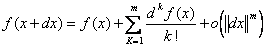 6) Se f è m volte differenziabile in xÎX insieme aperto e dx è tale che il segmento [x+dx]Í X allora a) Vige la formula di Taylor con il resto di Peano e b) Se inoltre f è m+1 volte differenziabile in (x+dx) allora esiste q0 tale che :