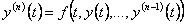 45) Soluzione di una equazione differenziale : Sia f :D®Ân una funzione continua su di un aperto D di Ân+1 , allora una funzione y : I®Â di classe C´[I] tale che (t,y(t)) Î D e tÎ I è detta soluzione della equazione differenziale y´(t) = f(t,y(t)) a patto che la soddisfi identicamente " tÎI essendo I un intervallo non degenere.