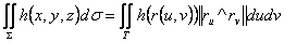 129) Integrale di superficie di una funzione h(x,y,z) :