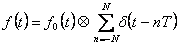 10) Come scrivere un segnale f(t) che replica 2N volte il segnale f0(t) : Per mezzo della convoluzione tra il segnale f0(t) ed un treno di impulsi |