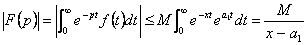 4) Condizione di convergenza della integrale di Laplace : L´integrale Si ha p = x+iy e del resto a è l´indice del grado di crescenza della funzione f(t) ossia vale la disuguaglianza |f(t)| £ Meat si può quindi maggiorare l´integrale con un n° reale e dunque l´integrale è convergente, infatti se a1 = a + e Þ