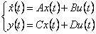 5) Equazioni dinamiche per un sistema MIMO : Un sistema MIMO possiede diversi ingressi e diverse uscite è descritto dal sistema A è la matrice di sistema, o matrice dinamica B è la matrice d´ingresso al sistema, o matrice di forzamento C è la matrice d´uscita dal sistema D è la matrice di connessione diretta ingresso uscita, nei sistemi reali essa è nulla u è il vettore di ingresso y è il vettore di uscita x è il vettore di stato
