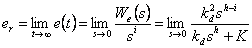 dove d0 è la ampiezza del gradino che simula la componente deterministica del disturbo, h1 è il numero di poli nell'origine del blocco G1 ed h2 il numero di poli nell'origine del blocco G2 , si osserva che l'errore a regime è nullo ossia il sistema non risente del disturbo nel caso vi sia un polo nell'origine h1=1 locato immediatamente a ridosso del comparatore. Nel caso in cui il sistema presenti già un polo nell´origine è meglio non aggiungerne un altro il quale infatti potrebbe determinare instabilità.
