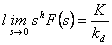 7) Guadagno a ciclo aperto : Si tratta del limite per s®0 della F(s) moltiplicata per sh cioè Kp = Costante di posizione : nel caso presenti h = 0 ossia 0 poli nell´origine Kv = Costante di velocità : nel caso presenti h = 1 ossia 1 polo nell´origine Ka = Costante di accelerazione : nel caso presenti h = 2 ossia 2 poli nell´origine
