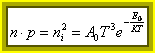 6) Legge di azione di massa : Si osserva che se aumento la concentrazione di portatori di tipo "n" (…drogando con impurità tetravalenti) si riduce il numero di portatori "p" in quanto si ricombinano e viceversa, si ha quindi che ad una data temperatura il prodotto del numero di portatori di tipo "p" per il numero di portatori di tipo "n" è costante e vale