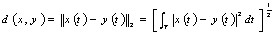 10) Distanza tra x(t) ed y(t) :