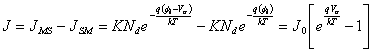 10) Equazione ideale del diodo : In condizioni di equilibrio termico si ha che |JMS| = | JSM| e JSM è proporzionale attraverso una costante di proporzionalità K alla densità di elettroni liberi ns presenti in banda di conduzione al bordo con la giunzione quindi