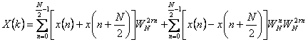 6) Algoritmo di FFT basato sulla decimazione in frequenza : In sostanza la sequenza X(k) viene scomposta in sottosequenze via via più piccole in particolare al primo passo si costituiscono due sequenze ciascuna da N/2 punti , una relativa ai pari e la altra relativa ai dispari