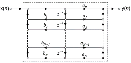 7) Realizzazione di filtri IIR in forma diretta II : E' una rete che presenta il numero minimo di rami e pertanto di ritardi